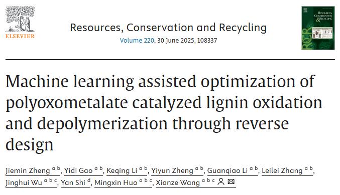 第一作者:郑洁敏,主要研究领域涵盖生物质资源高值化利用、多金属氧酸盐催化技术及机器学习在催化反应优化中的应用。在本研究中,她负责数据整理、概念构思及论文初稿的撰写与修订,深度参与了基于机器学习的木质素解聚预测建模与逆向设计系统的开发,优化了多金属氧酸盐催化剂的选择及反应条件,为实现木质素高效转化为高价值芳香化合物提供了关键支撑。其研究工作推动了生物质转化与人工智能交叉领域的技术创新,为可再生资源的可持续利用提供了新方法。
