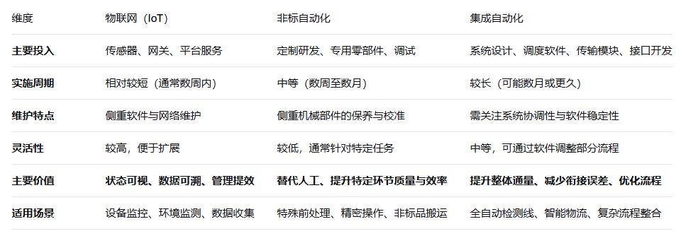 建议分步走:先监控(IoT),再补短板(非标),最后连成线(集成)。